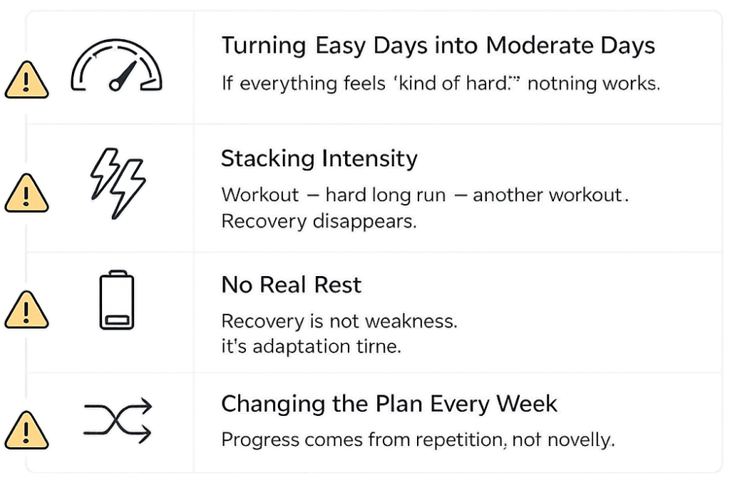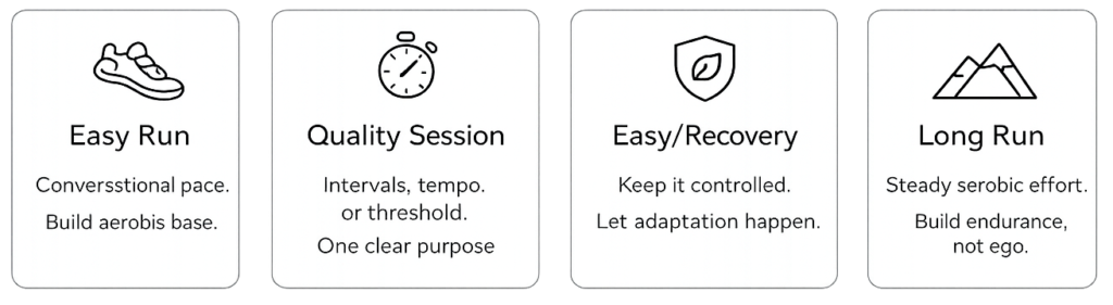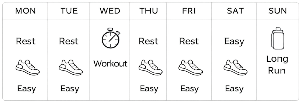 When your training week has a clear rhythm — easy runs, one focused workout, a long run, and recovery — improvement becomes predictable.