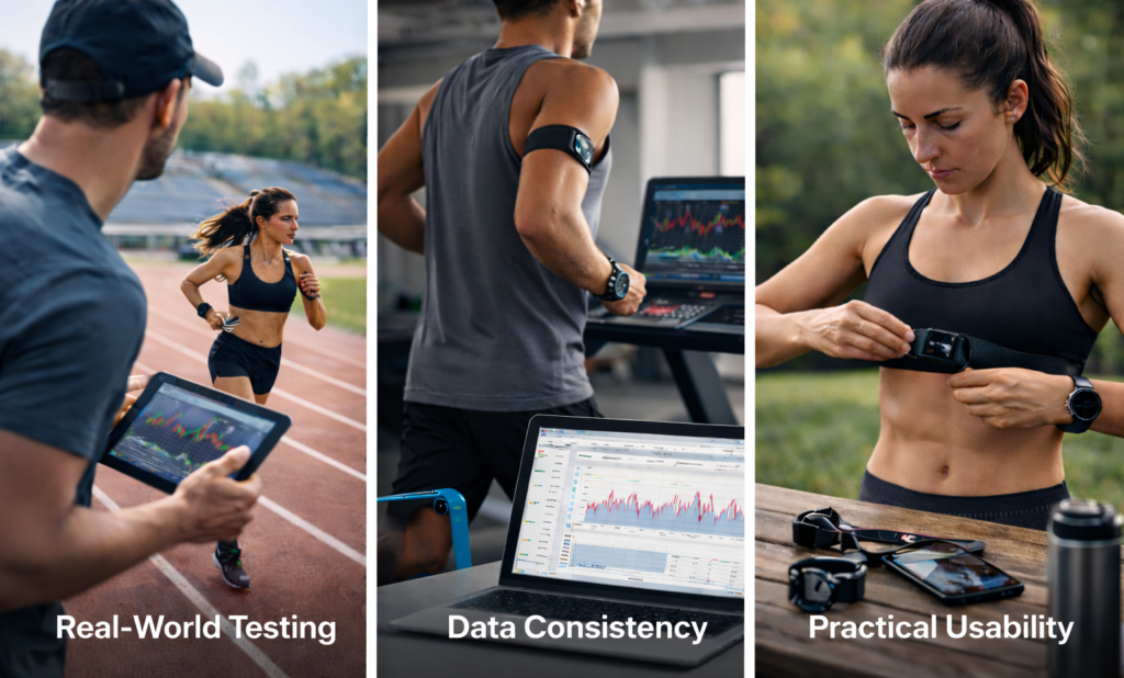 We look beyond average heart rate and focus on responsiveness, signal stability, and long-term reliability across different training intensities.