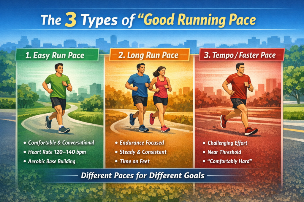 A good running pace isn’t a fixed number — it’s the right effort level for your goal, whether that’s an easy run, a long run, or a faster workout.