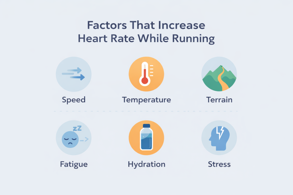 Environmental conditions such as heat, hills, fatigue, and hydration can significantly affect your heart rate even if your pace remains the same. On some days, a pace that normally feels easy may suddenly push your heart rate much higher than expected.
